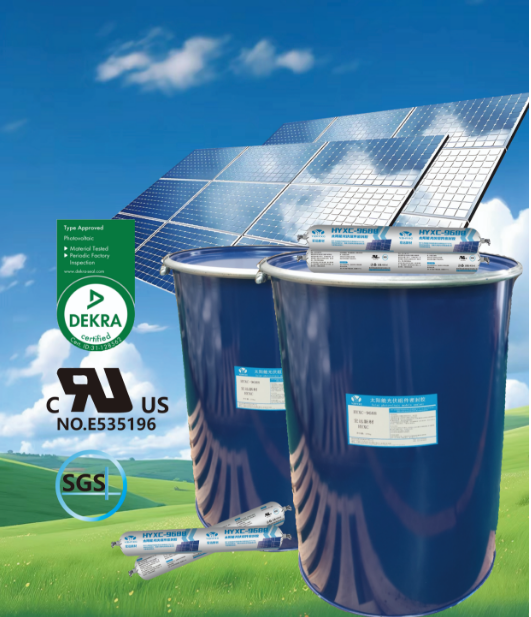 •单组分,脱肟型,白色触变膏状,湿气固化 太阳能光伏组件铝框的密封及接线盒TPT/TPE背膜的粘接密封、薄膜太阳能电池背面金属支架与玻璃的粘接固定。